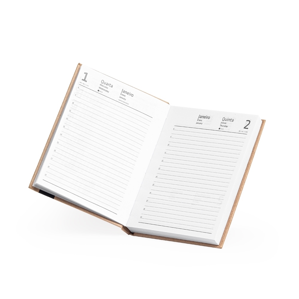 Comece o ano de forma ordenada e planejada com nossa Agenda Diária 2025. Feita em kraft, ela combina simplicidade com um toque de elegância natural. Possui espaço para dados pessoais, calendário de 2024 a 2026, planejamento mensal e espaço dedicado aos aniversariantes importantes.