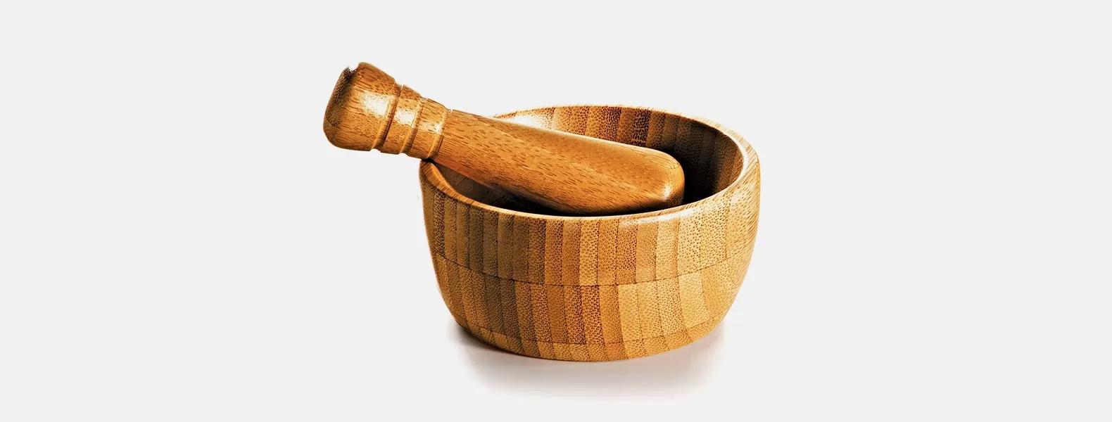 Amassador De Temperos Em Bambu Com Pilão De 10cm