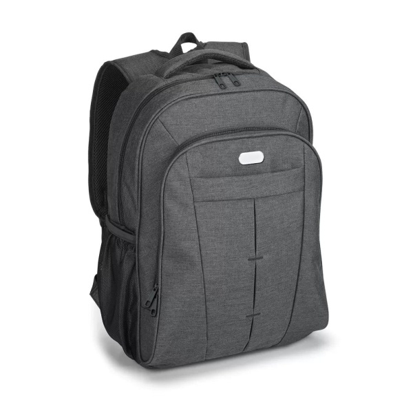 Mochila para notebook. 600D de alta densidade. Compartimento forrado, com divisória almofadada para notebook até 17 e diversos bolsos interiores. 2 bolsos laterais em tela e 2 bolsos frontais. Parte posterior almofadada, com sistema de apoio acolchoado pa