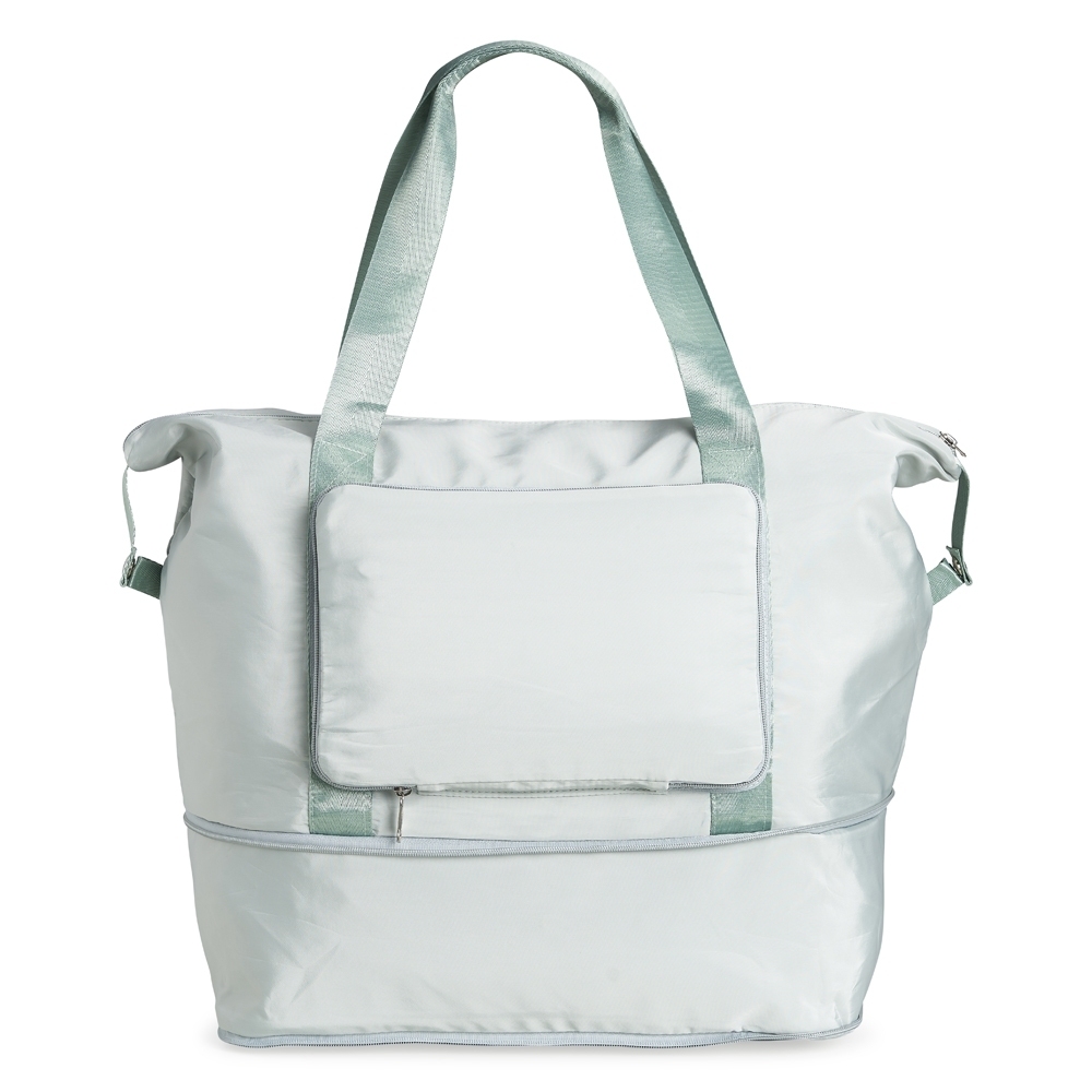Bolsa dobrável e expansível de 35 litros em poliéster à prova d’água com dois compartimentos, sendo o principal com bolsos internos para acessórios e compartimento lateral exclusivo para compactação da bolsa. Contém bolso lateral para encaixe em malas de viagem e zíper inferior para expansão de tamanho.