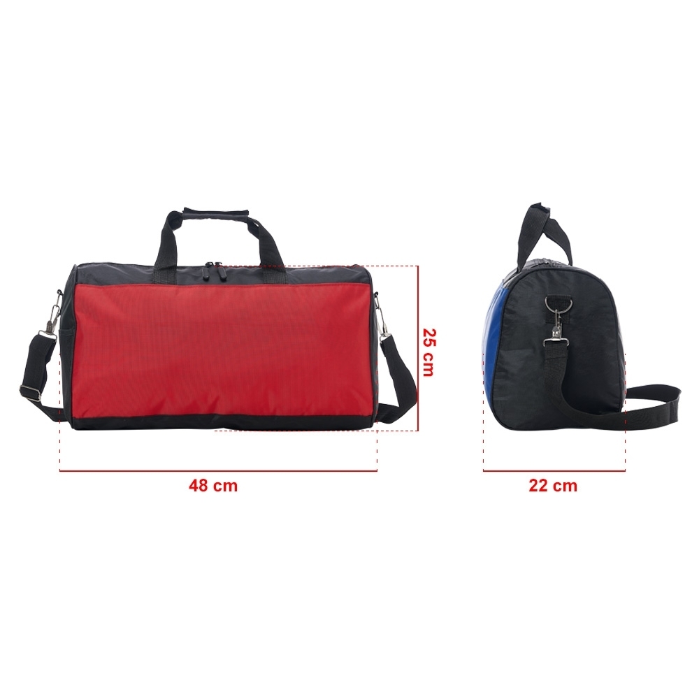 Bolsa esportiva de 26 litros em poliéster resistente à água com amplo compartimento e bolso lateral telado. Contém bolso interno, alça de mãos com suporte de juntura e acompanha alça transversal.