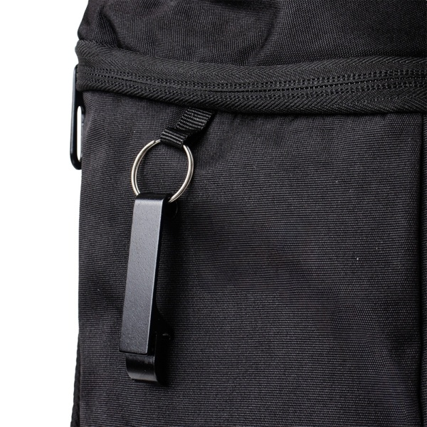 Mais que uma bolsa térmica, ela possui capacidade de 32 litros e alças que permitem carregá-la nas costas. Feita em oxford, é resistente à água e conta com quatro compartimentos: um com revestimento térmico em PEVA atóxico e costura soldada antivazamento, perfeito para manter os alimentos na temperatura ideal ou armazenar gelo, deixando as bebidas sempre geladinhas; outro para frutas, iogurtes e saladas; e dois na parte frontal com zíper, sendo um deles com faixa refletiva e elástico ajustável. Nas laterais, bolsos de tela oferecem fácil acesso a garrafas e outros itens. Para completar, inclui um chaveiro abridor de garrafas, ideal para facilitar ainda mais o momento de lazer.