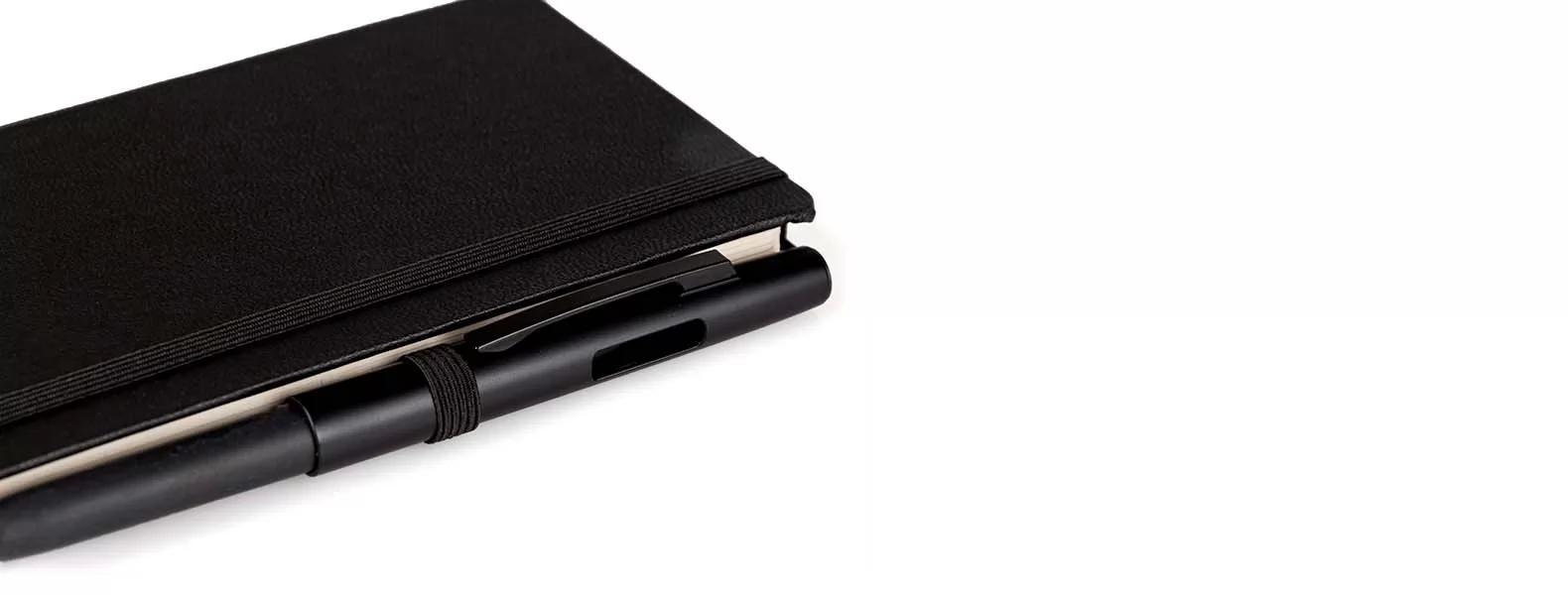 Caderno para anotações preto com capa dura. Conta com 80 folhas pautadas, marcador de página, porta caneta e elástico para fechamento. Gramatura da folha de 70 g/m2. Dimensões do produto: 12,2×17 cm Embalagem: Caixa Preta Dimensões da embalagem: 127x177x15 mm (AxLxP) Peso da embalagem: 210 g