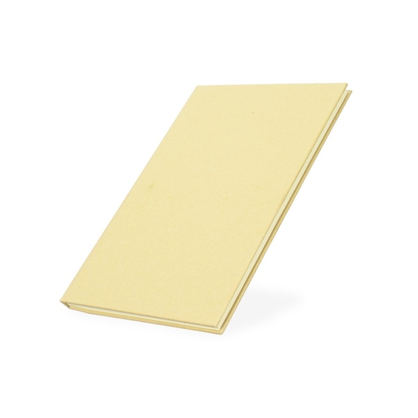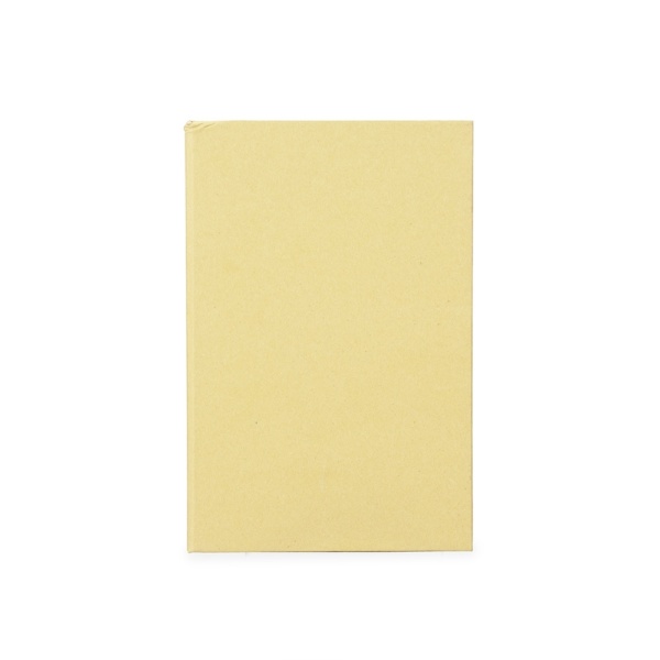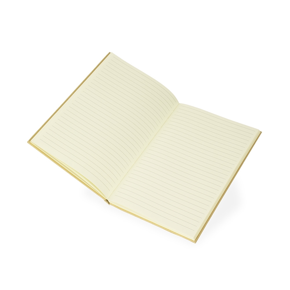 Caderneta leve e versátil, com capa dura em papel kraft e acabamento liso na frente e no verso. Contém aproximadamente 60 folhas amareladas com pauta e duas folhas de guarda.