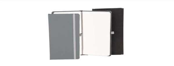 Caderno para anotações cinza com capa dura. Conta com 80 folhas não pautadas, marcador de página, porta caneta e elástico para fechamento. Gramatura da folha de 70 g/m2. Dimensões do produto: 12,2×17 cm Embalagem: Caixa Preta Dimensões da embalagem: 127x177x15 mm (AxLxP) Peso da embalagem: 210 g