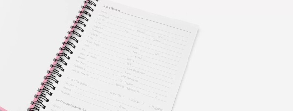 Caderno para anotações wire-o rosa com capa dura revestida em percalux linho. Conta com folha para dados pessoais, calendário e 100 folhas pautadas. Gramatura da folha de 70 g/m2. Dimensões do produto: 29×21,5×2,5cm Embalagem: Caixa Preta Dimensões da embalagem: 295x220x25 mm (AxLxP) Peso da embalagem: 630 g