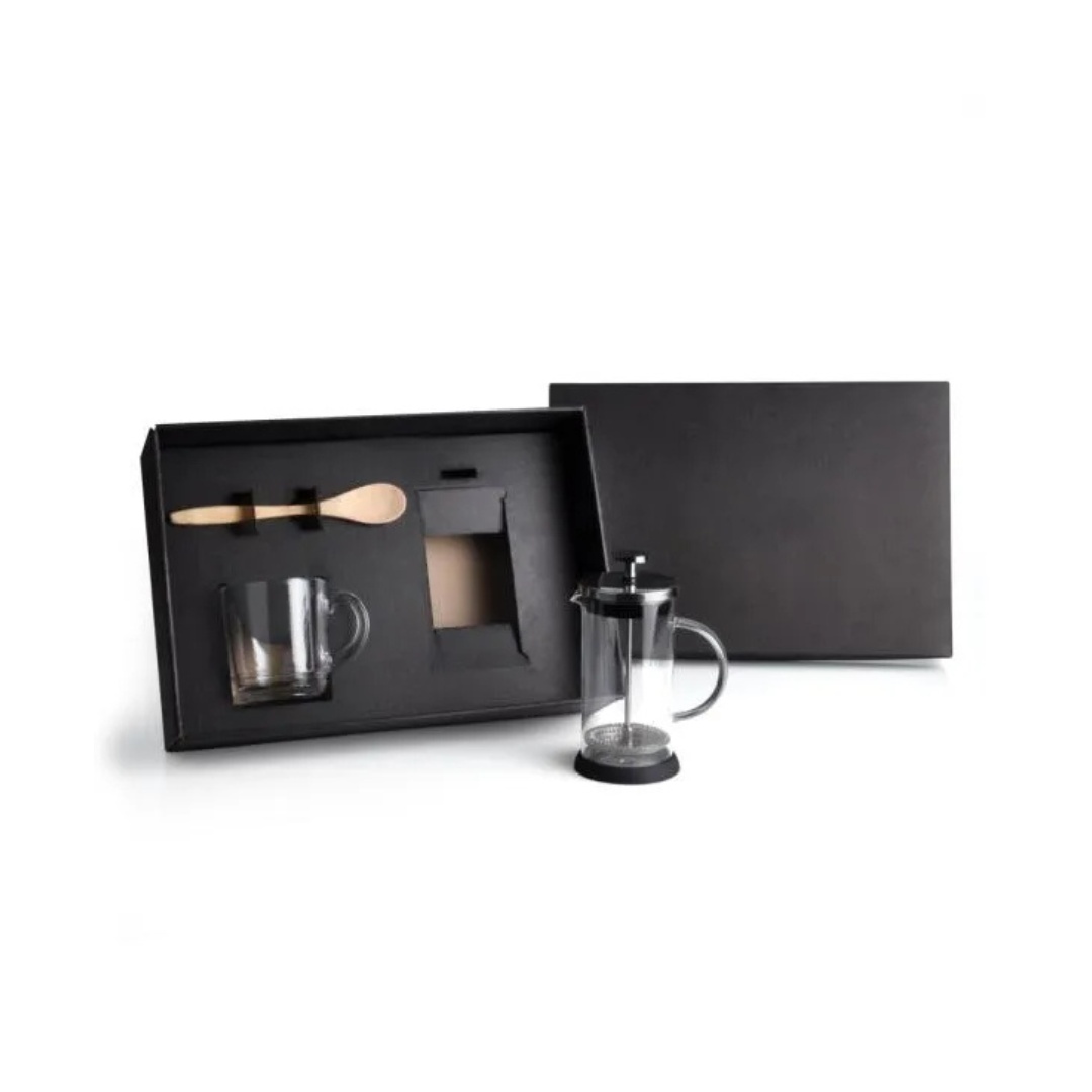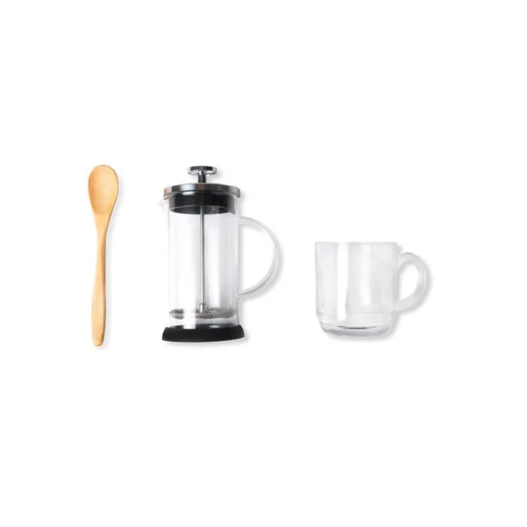 Cafeteira Prensa Francesa em Vidro com Caneca e Colher de Bambu