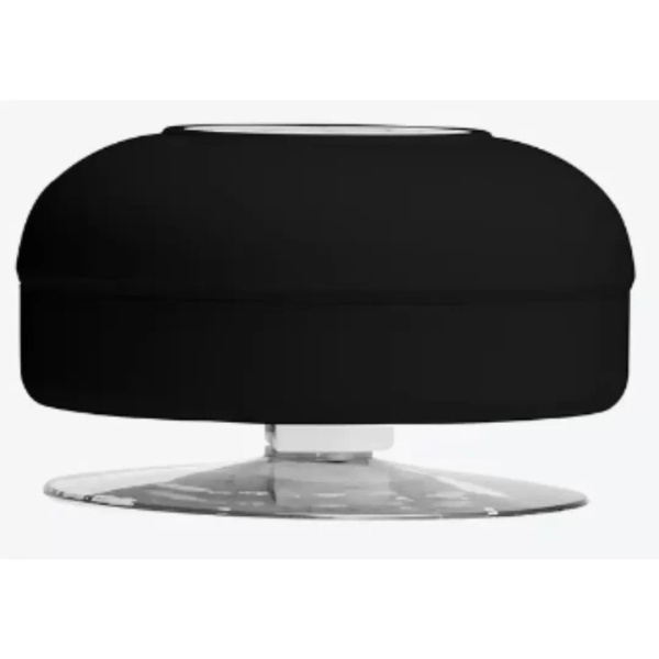 Caixa de som impermeável em ABS. Conta com ventosa; transmissão bluetooth; 3W e 4O de potência; atende chamadas; controle de volume; acesso à playlist do dispositivo; autonomia de até 3hrs; acabamento emborrachado; cabo para carregamento.