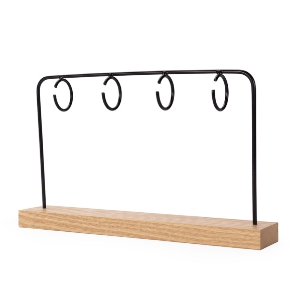Um calendário permanente de mesa para dar um toque a mais elegante na decoração de mesas, estantes e outros espaços visíveis. Com base em madeira, suporte em metal e cartões em papel cartão, é um item durável e com ajuste manual simples e direto, basta virar o cartão em uma das argolas metálicas para organizar ou reorganizar o calendário da maneira desejada. Acompanha ao todo 16 cartões impressos em frente e verso divididos em: 6 cartões numéricos para marcação dos dias do mês, 6 cartões com nomes dos meses abreviados e outros 4 cartões com a abreviatura dos dias da semana.