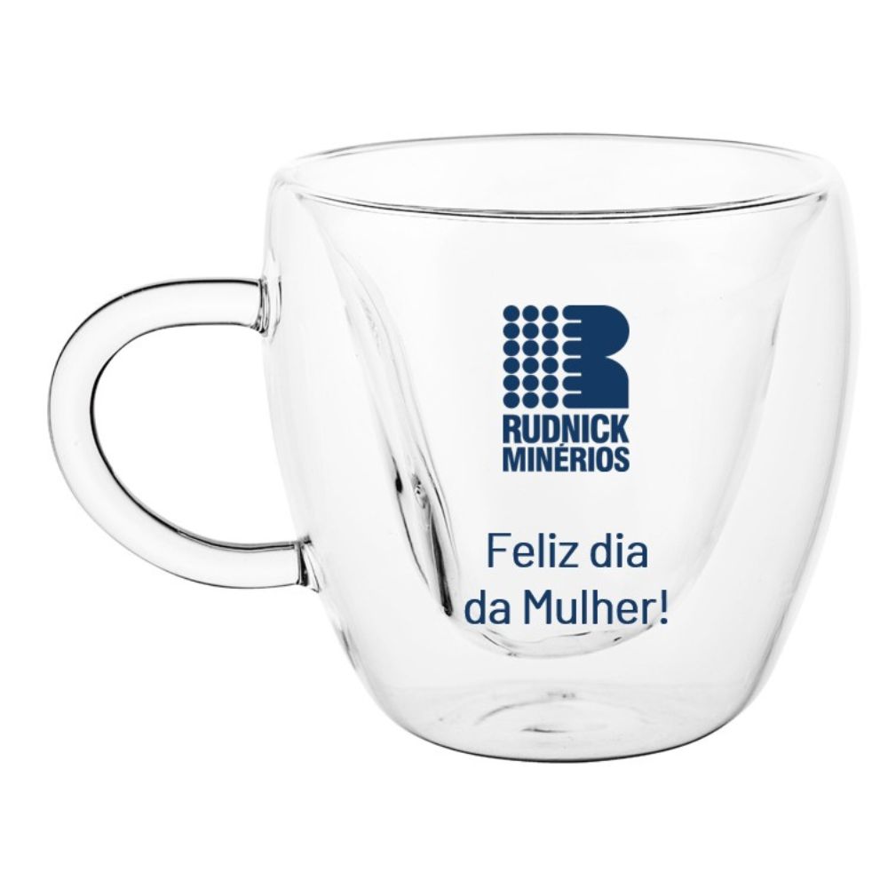 Caneca em vidro isotérmico (borossilicato) com parede dupla isolada a ar. Ideal para presentear pessoas especiais, clientes, colaboradores e parceiros de negócios.