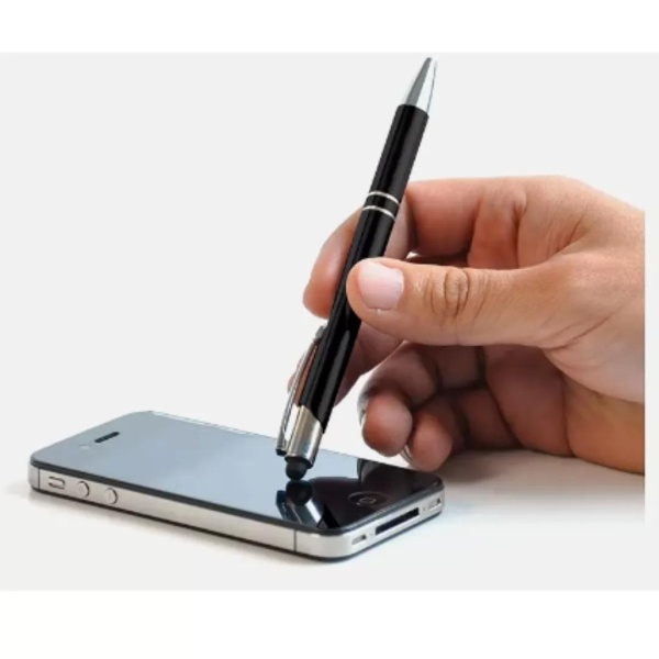 Caneta Esferoráfica Em Alumínio Com Ponta Touch Preta