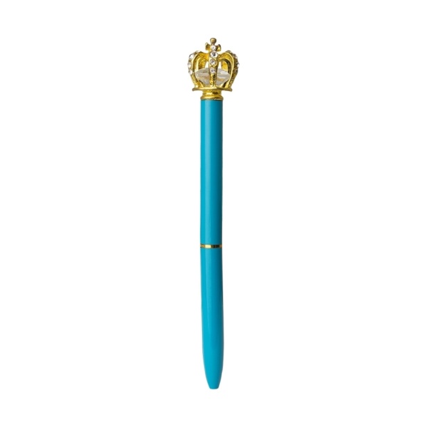 Caneta metálica com carga esferográfica azul 1,0mm e acionamento por rotação.