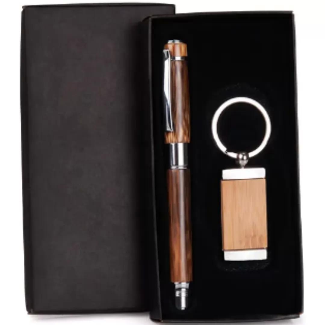 Caneta Roller E Chaveiro Em Metal / Bambu