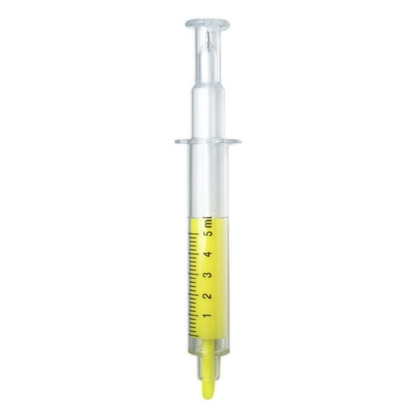 Caneta Plástica Formato Seringa com Marca-Texto e Esferográfica