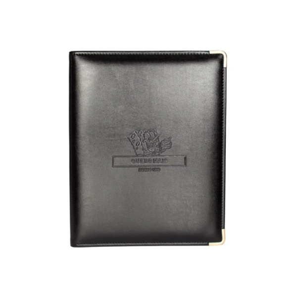 O Cardápio A4 Luxo Incorpast garante durabilidade e elegância na apresentação de seu menu. Fabricado em couro sintético o Cardápio A4 Luxo é almofadado, vem com 10 plásticos, possui parafusos e cantoneiras em metal. O Cardápio A4 Luxo Incorpast te garante mais facilidade, pois pode ser limpo sempre que necessário. Personalize sua Logo em baixo relevo ou serigrafia. Tenha um Cardápio com o mesmo nível de qualidade que seus alimentos em seu Estabelecimento!