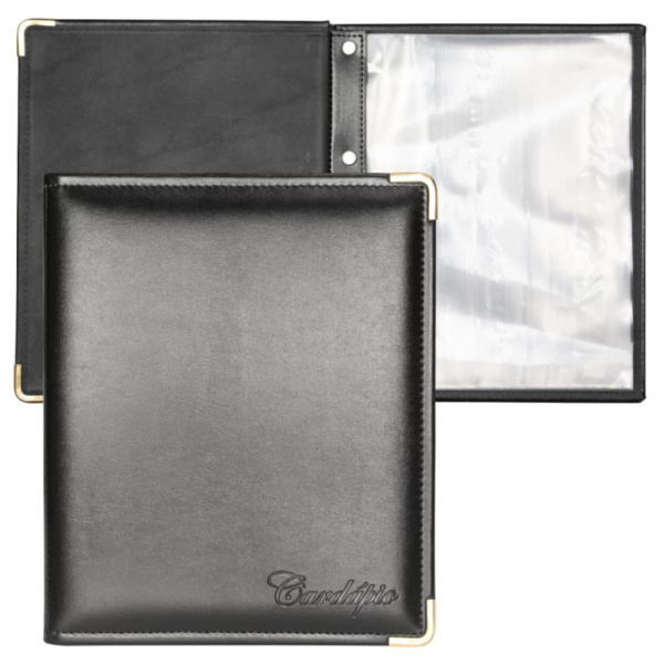 Cardápio A4 Luxo em Couro Sintético 10 Env. Plásticos 31,5x24cm