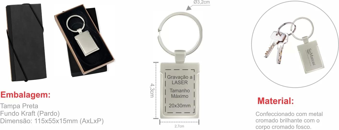 Confeccionado em metal cromado fosco, possui argola com Ø 3,3cm e está acomodado em uma embalagem interna aveludada e caixa kraft com tampa fechada em cordão elástico preto para presente. Dimensões do produto: 7,5×2,8×0,4cm Embalagem: Caixa Preta Dimensões da embalagem: 120x55x10 mm (AxLxP) Peso da embalagem: 40 g