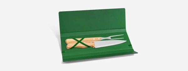 Conjunto composto por uma faca 7” e um garfo trinchante, ambos com cabos em Bambu e lâminas em Aço Inox com rebites resistentes. Estão organizados em uma pasta verde com elásticos. Dimensões do produto: Pasta: 33x10x2cm Embalagem: Plástica Dimensões da embalagem: 330x100x20 mm (AxLxP) Peso da embalagem: 260 g