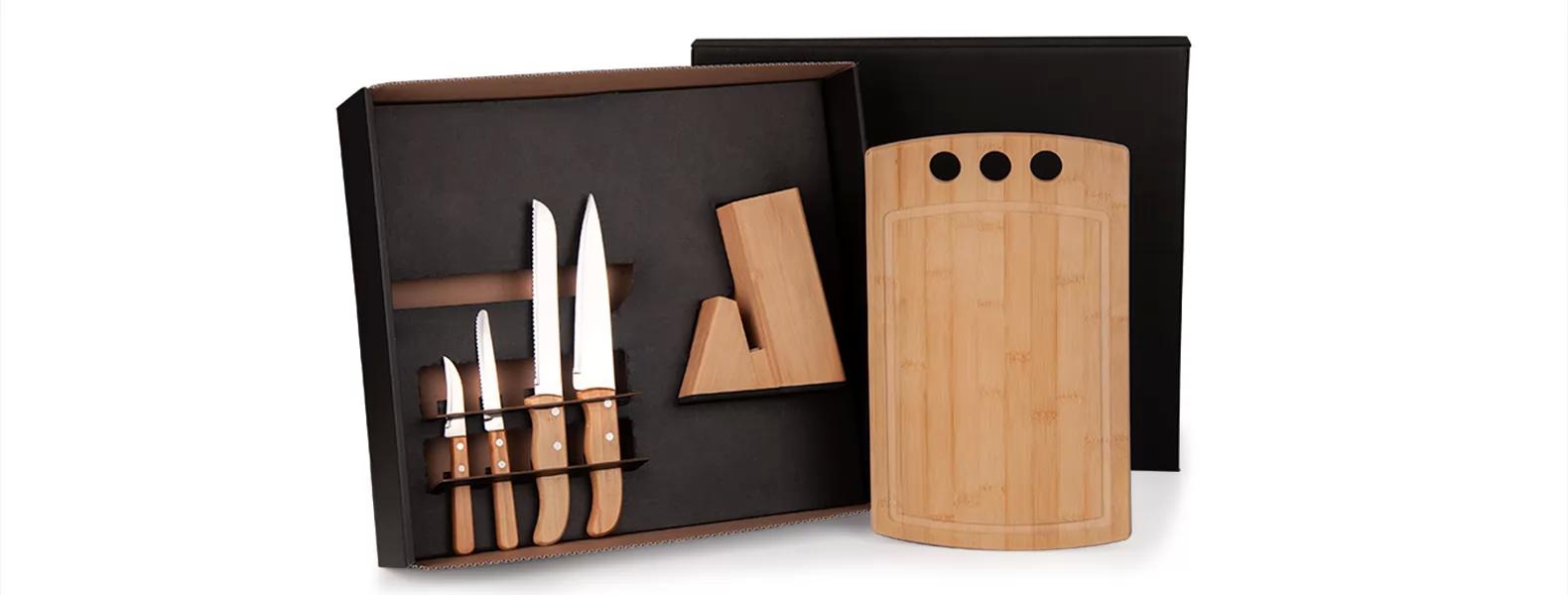 Conjunto Para Cozinha C/ Cepo Em Bambu / Inox – 6 PÇs