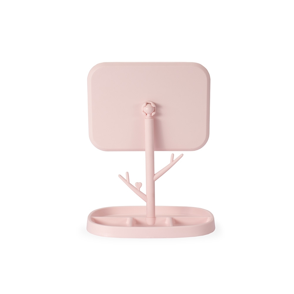 Este espelho de mesa em formato retangular é uma opção funcional e elegante com estrutura em plástico de fácil montagem. Seu pedestal giratório permite o ajuste do espelho em diferentes ângulos e posições. Além disso, contém ganchos laterais e quatro divisórias na base para organizar objetos, ampliando a sua versatilidade.