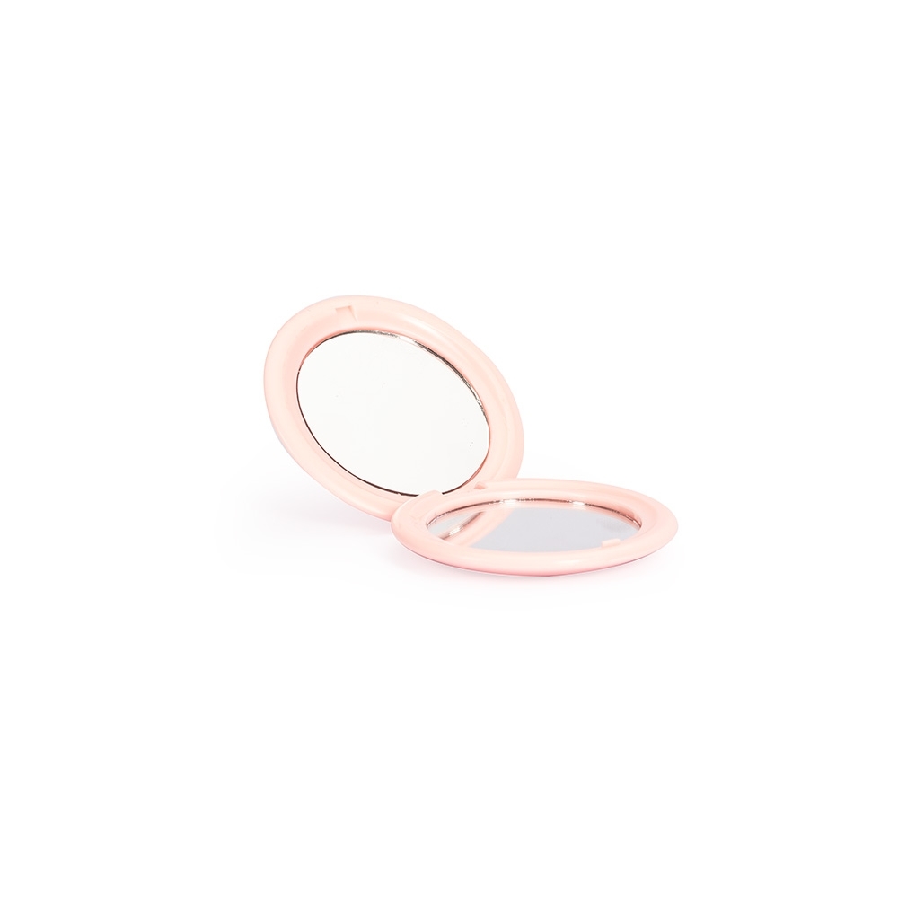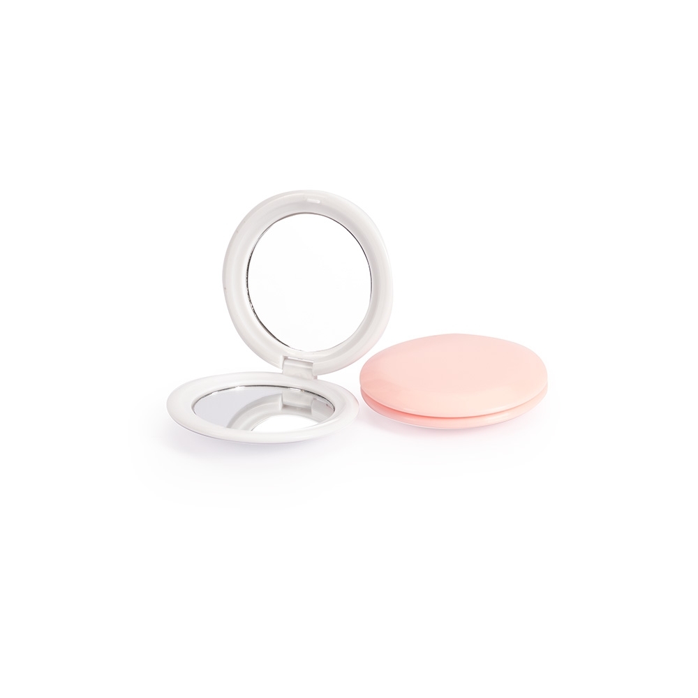 Compacto e funcional, este espelho duplo de bolso é produzido em material plástico. Seu design diferenciado conta com centro plano e bordas em declive, proporcionando um acabamento moderno e elegante.
