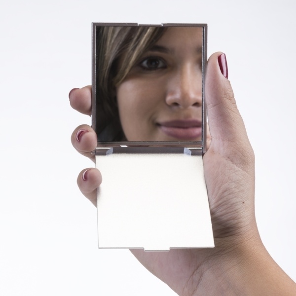 Espelho plástico retangular sem aumento. Produzido em plástico resistente frente e verso liso.