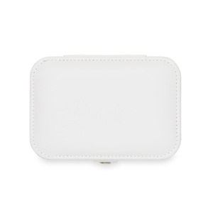 Estojo de alumínio escovado para pen drive, possui tampa e parte interna revestida com espuma.