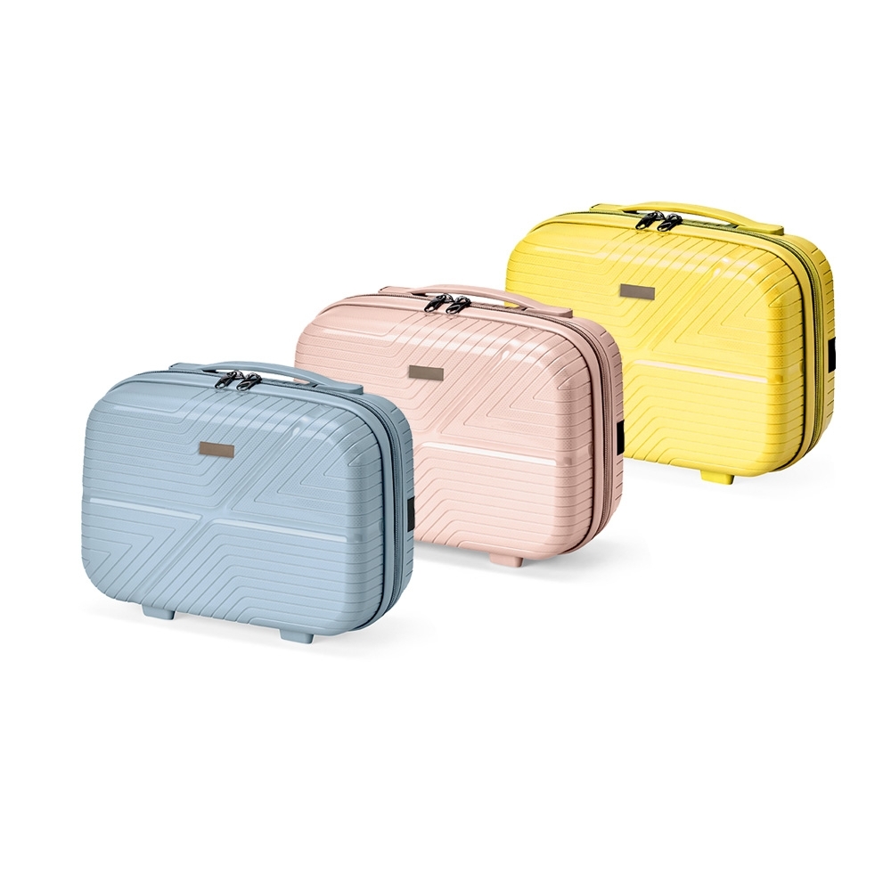 Frasqueira de viagem em plástico rígido com capacidade de até 10 litros. Apresenta três compartimentos internos, incluindo bolso em tela de nylon com zíper. Além disso, possui quatro apoios reforçados na parte inferior, alça de mão e elástico na parte posterior para encaixe em malas maiores. Acompanha placa em metal para personalização.