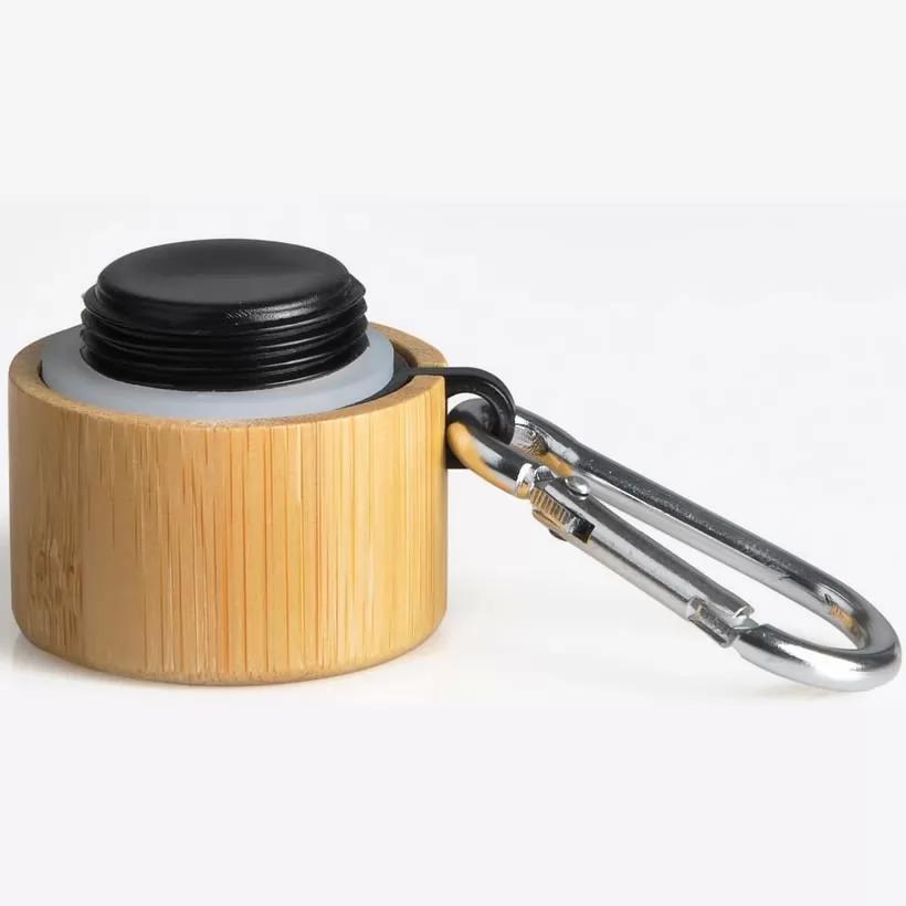 Garrafa em alumínio na cor preta com capacidade de 1 litro. Possui tampa rosqueável em bambu.