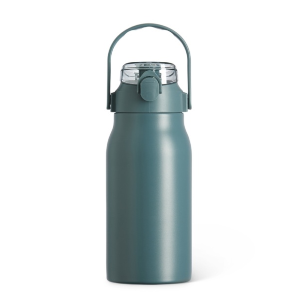 Garrafa Térmica com parede dupla, capacidade de 1 Litro. Tampa com trava de segurança, botão de acionamento e tampa de proteção para o bocal. Com alça para transporte, acompanha um canudo e dois acessórios de extensão de canudo.
