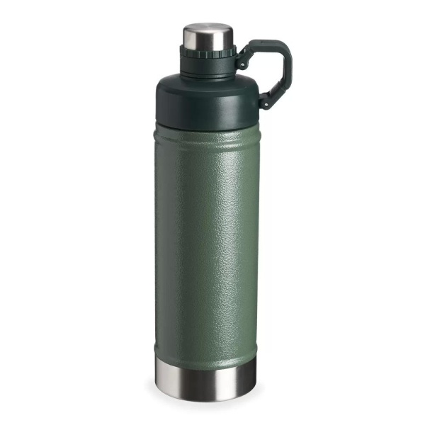Garrafa térmica de parede dupla em inox, capacidade de 700ml. Tampa principal com bocal e tampa protetora com alça de transporte acoplada.