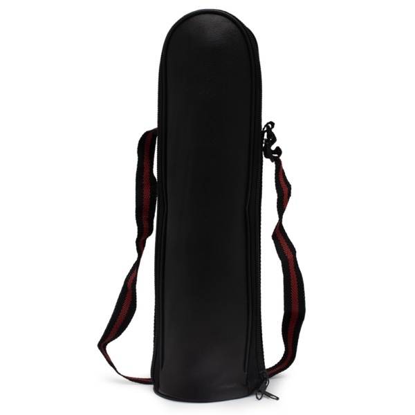 Garrafa térmica parede dupla em inox com capacidade de 750ml, acompanha capa de couro sintético com alça de nylon.