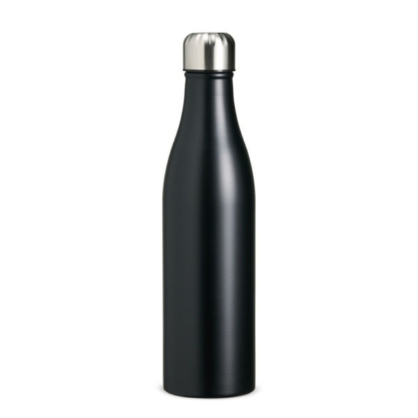 Garrafa térmica de inox com parede dupla, capacidade de 800ml. Contém tampa rosqueável com detalhe externo em relevo.