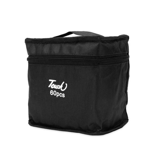 Um kit com 60 canetas marcadoras com pontas duplas: uma fina e outra chanfrada grossa. Cada uma das canetas possui corpo leve em plástico, projetado com foco na ergonomia, o que torna seu manuseio simples e agradável até mesmo em períodos prolongados. Este é um conjunto que, através de toda a sua versatilidade com as pontas e a variedade de cores, traz todas as possibilidades criativas para pintar, desenhar, escrever ou marcar textos. Acompanham bolsa para facilitar o transporte do kit.