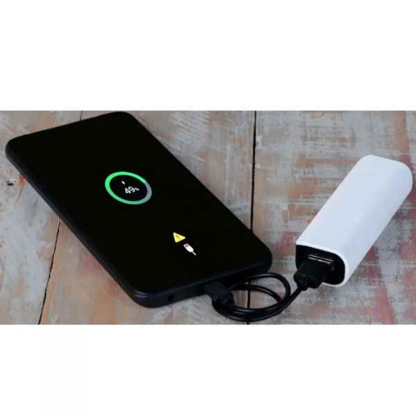 Carregador portátil USB em Plástico ABS para celular/smartphone/tablet com capacidade: 1.800mAh. Conta também com Caneta esferográfica em ABS preta.