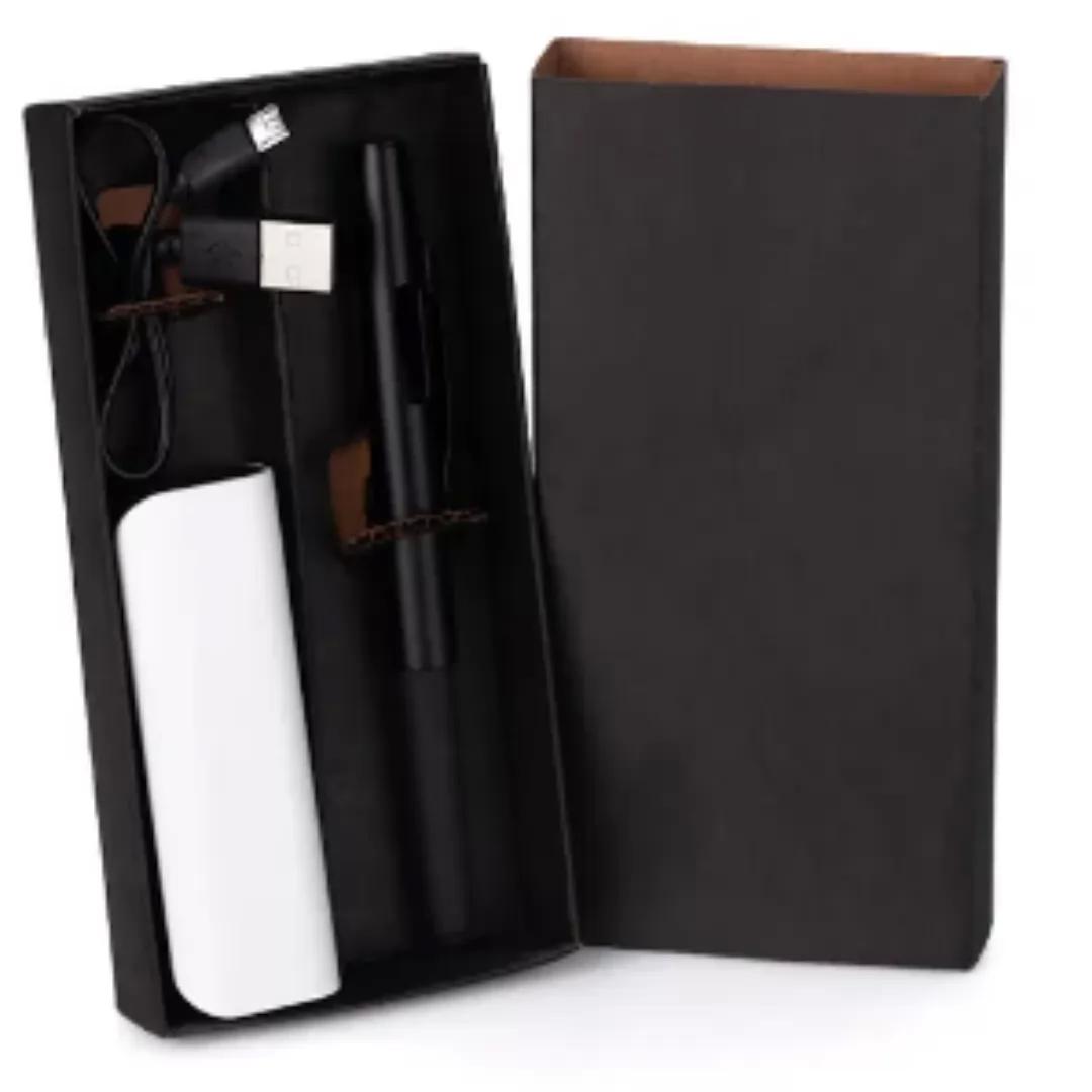 Carregador portátil USB em Plástico ABS para celular/smartphone/tablet com capacidade: 1.800mAh. Conta também com Caneta esferográfica em ABS preta.