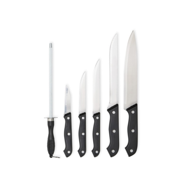 Um kit completo para ajudar na preparação de um churrasco inteiro e deixar o momento de confraternização ainda melhor. Este conjunto traz 7 itens, incluindo 1 tábua em plástico, 1 chaira em aço inox, e 5 facas em tamanhos diferentes do mesmo material: 1 faca de legumes (com 3 polegadas de lâmina), 1 faca de cozinha (com lâmina de 4 polegadas), 1 faca de desossar (com lâmina de 5 polegadas), 1 faca trinchante (com lâmina de 7 polegadas) e 1 faca peixeira (com lâmina de 8 polegadas). Tudo isso acompanhada por uma elegante maleta para facilitar a organização e o transporte do kit.