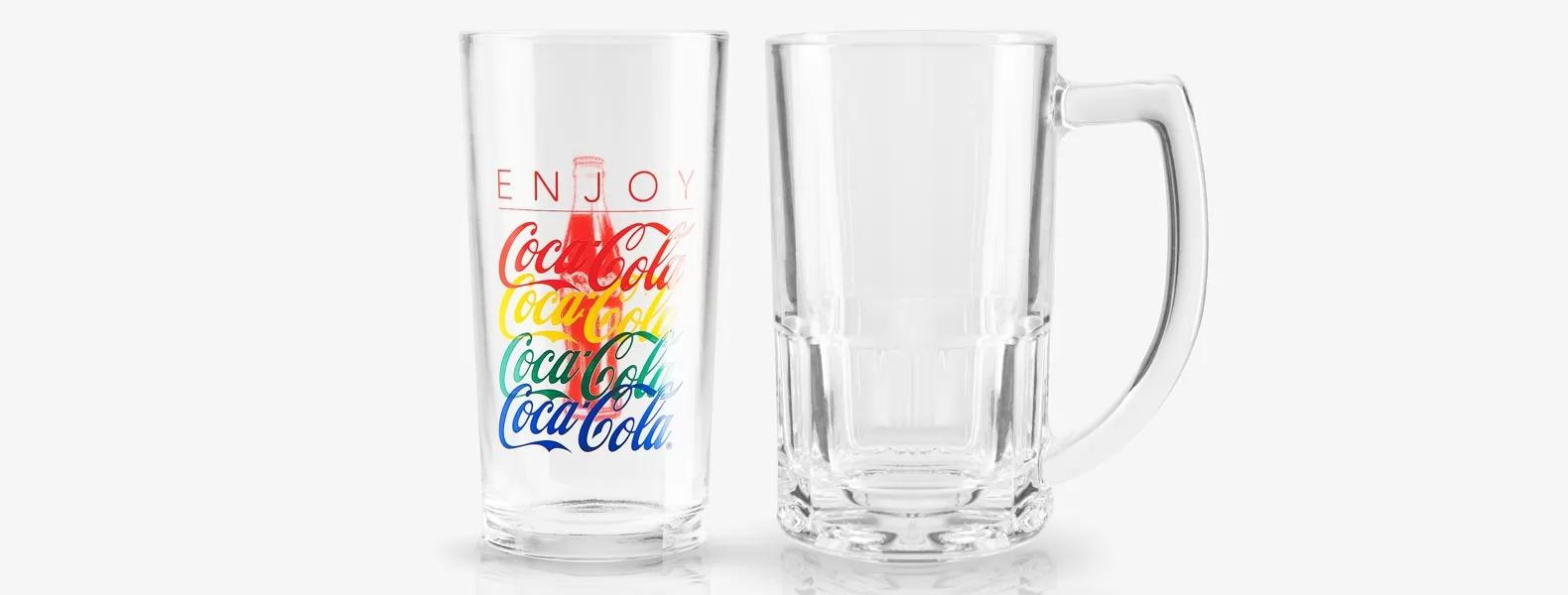 Conjunto contendo uma caneca para Chopp e um copo personalizado Coca Cola em vidro. Dimensões do produto: Capacidade caneca: 340ml / Capacidade copo: 390ml Embalagem: Caixa Preta Dimensões da embalagem: 230x230x90 mm (AxLxP) Peso da embalagem: 975 g