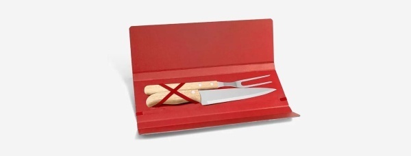 Conjunto composto por uma faca 7” e um garfo trinchante, ambos com cabos em Madeira e lâminas em Aço Inox. Estão organizados em uma pasta vermelha com elásticos. Dimensões do produto: Pasta: 33x10x2cm Embalagem: Plástica Dimensões da embalagem: 330x100x20 mm (AxLxP) Peso da embalagem: 260 g