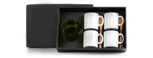 Kit Matinal. Conta com quatro canecas em cerâmica; quatro tigelas em vidro; quatro colheres em Bambu. Dimensões do produto: Capacidade da caneca: 270ml cada Embalagem: Caixa preta Dimensões da embalagem: 385x240x105 mm (AxLxP) Peso da embalagem: 1.950 g
