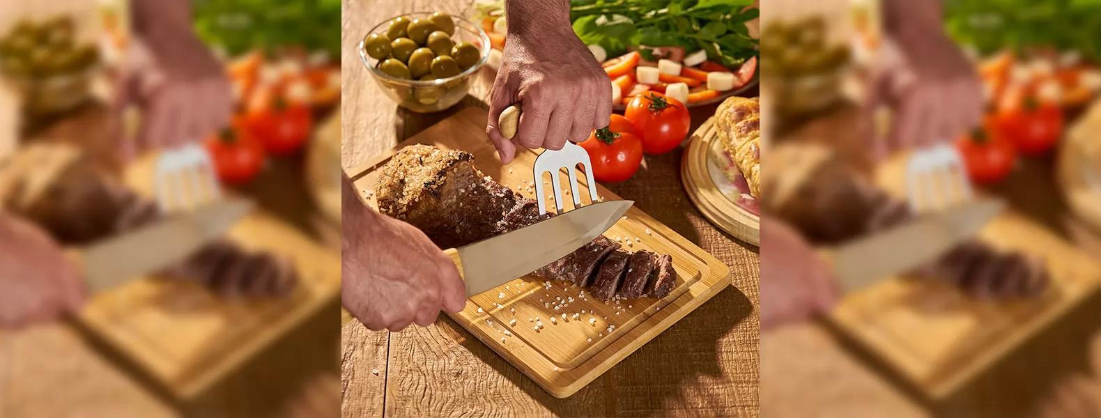 Kit Para Churrasco Em Bambu Com Garfo 4 Dentes – 5 PÇs