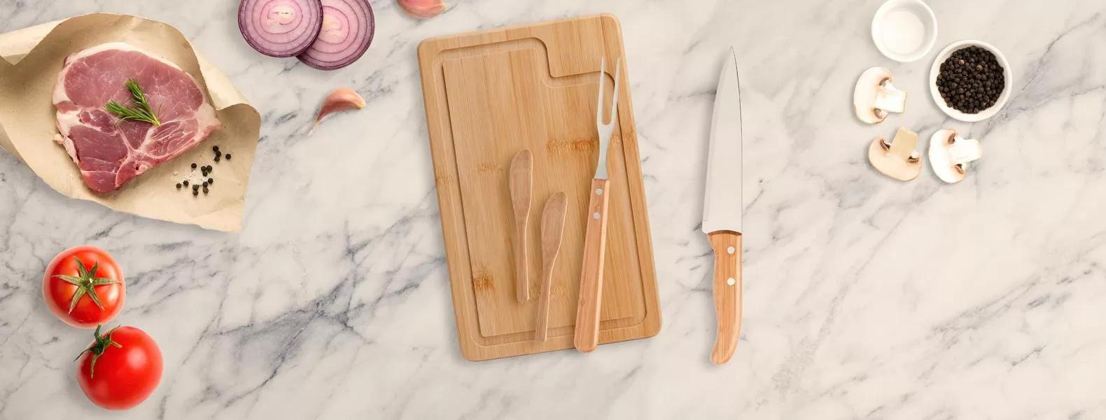 Kit Para Churrasco / Petisco Em Bambu / Porcelana – 7 PÇs