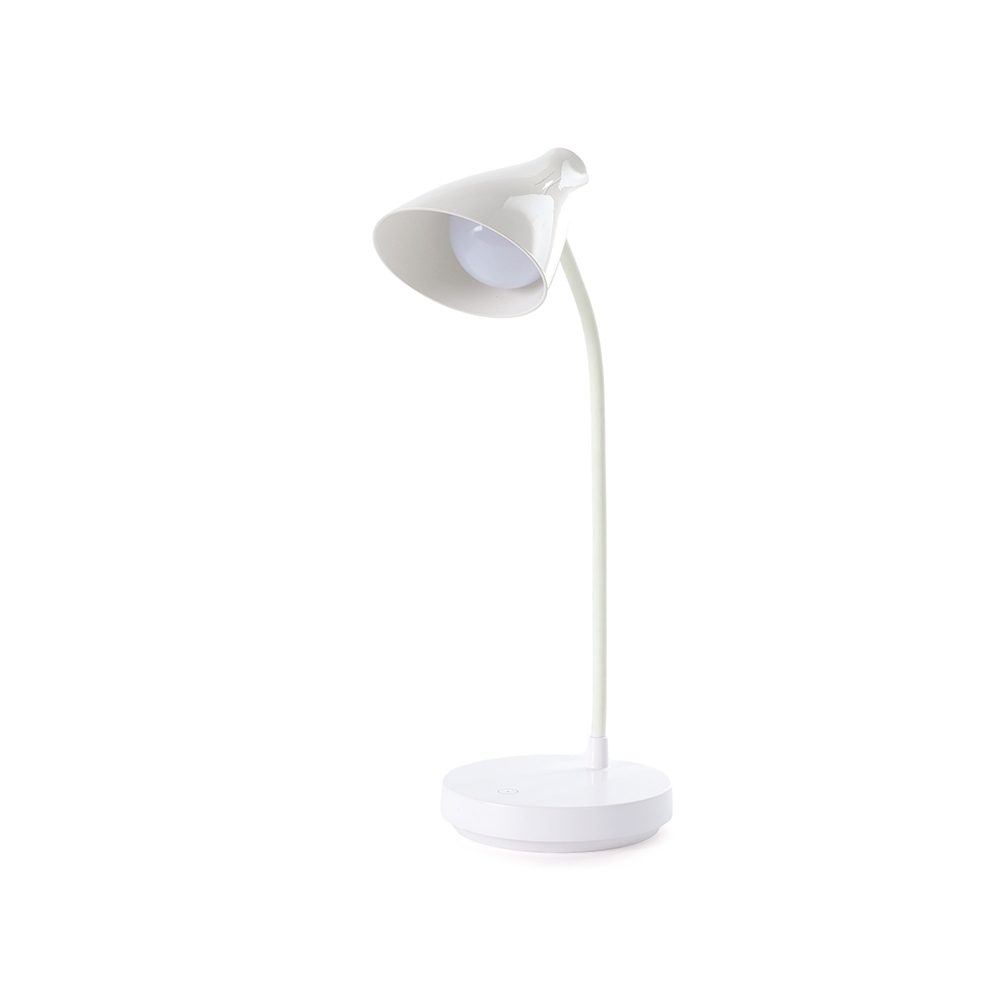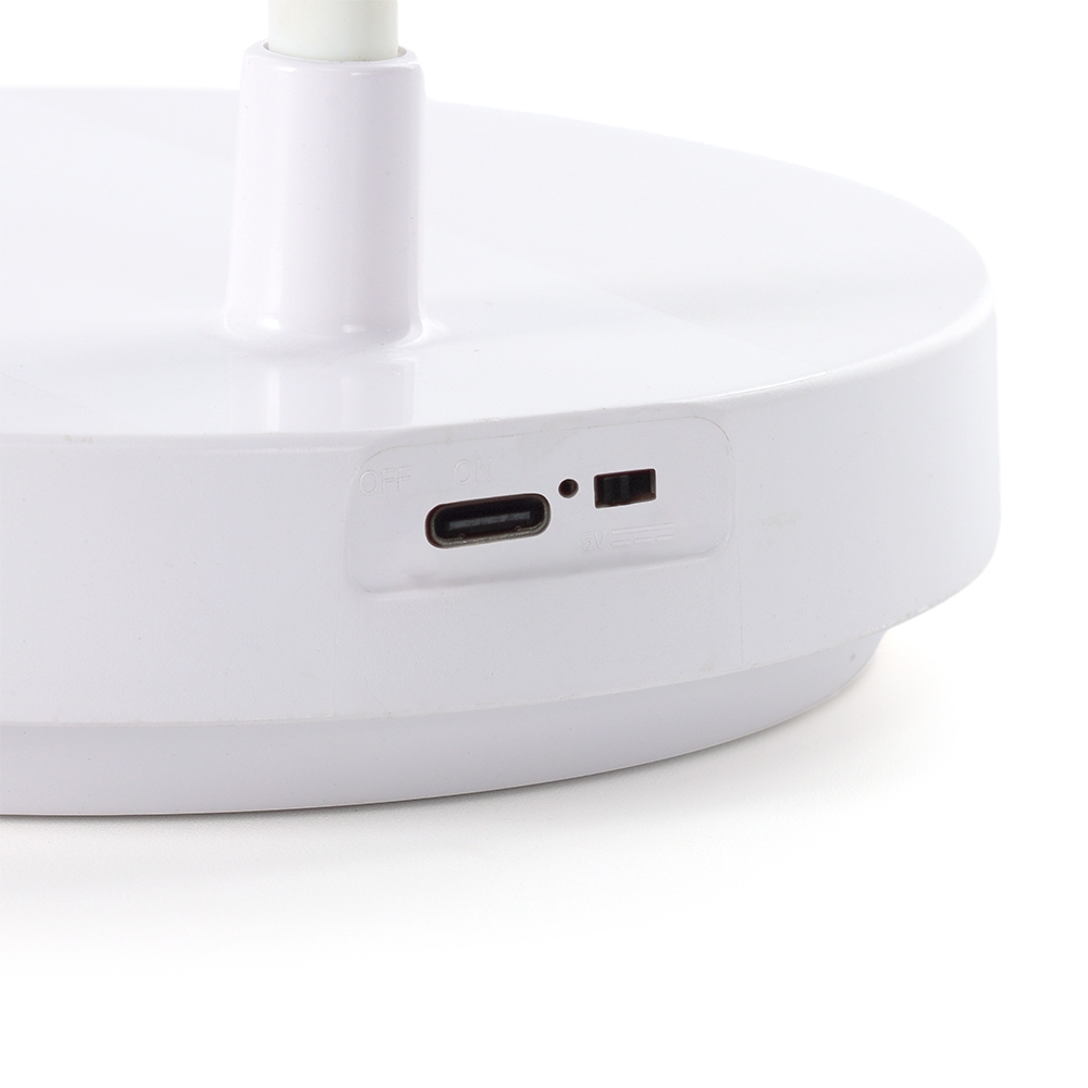 Luminária articulável em led recarregável e funcionamento touch, material plástico. Contém três estágios de iluminação com regulagem de intensidade touch: luz fria (branca), luz quente (amarela) e luz mista (branca e amarela). Base com botão para ligar e desligar. Acompanha uma bateria de lítio e cabo USB para carregamento. OBS.: PEÇAS AMARELADAS