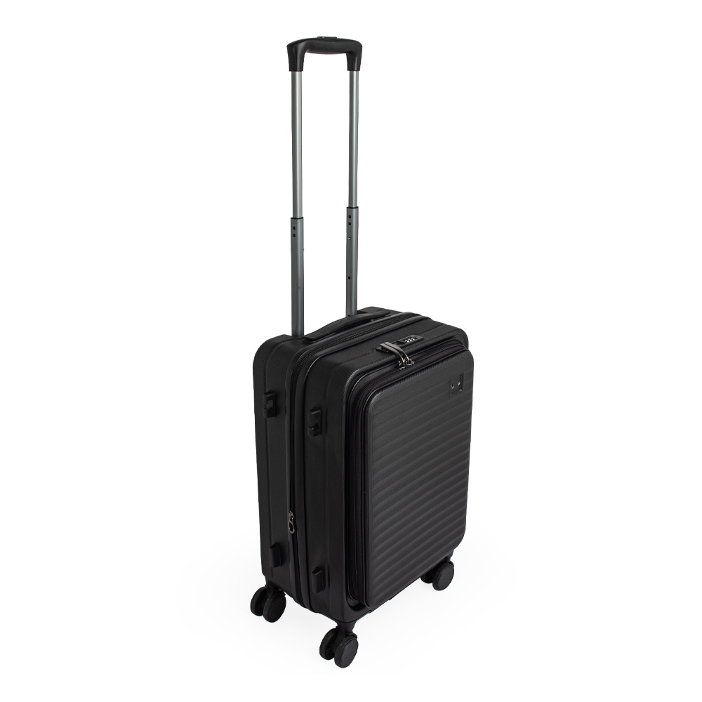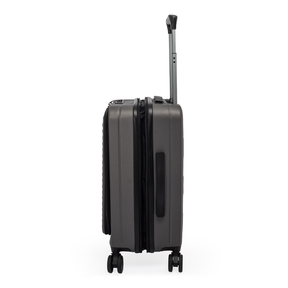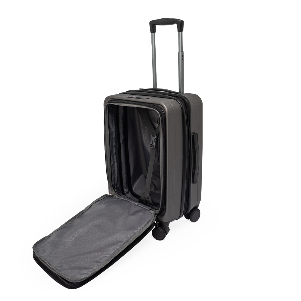 Mala de bordo 32 litros, resistente e funcional! Produzida em plástico ABS, conta com cadeado numérico TSA embutido para mais segurança. Seu design inteligente traz abertura frontal com bolso para notebook de até 15.6, além de divisórias internas com zíperes e cinta compressora para roupas. Precisa de mais espaço? O zíper externo expansível se encarrega de ampliar a capacidade da mala. Para facilitar o transporte, possui puxador retrátil de 3 estágios, duas alças de mão, apoios e ganchos laterais e rodinhas 360º, proporcionando mobilidade total. Acompanha plaquinha metálica grafite personalizável.