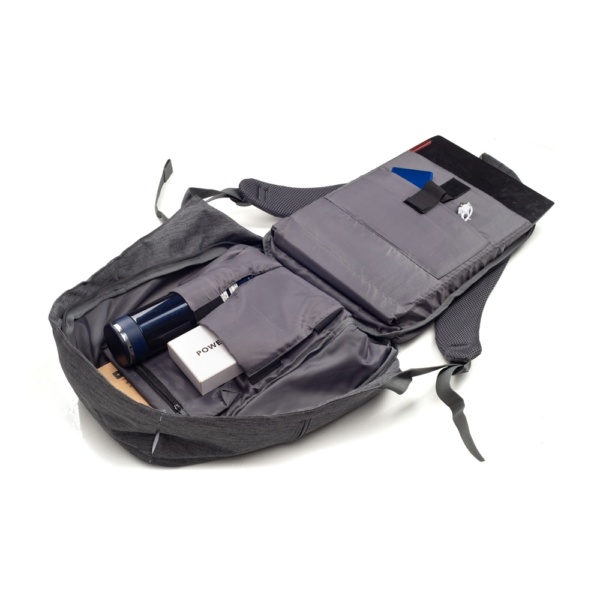Mochila antifurto impermeável, seu compartimento principal com abertura de zíper na área traseira impossibilita a abertura da mochila nas costas, assim protegendo-o de furtos e trazendo mais segurança para seus objetos de valores. Compartimento principal com bolso para notebook até 15.6 polegadas, bolso para tablet até 9 polegadas, três bolsos para acessórios e bolso com zíper, contém ainda um compartimento frontal e compartimento lateral. Contem faixa reflexiva na área frontal, alça de mãos, acesso para encaixe de malas com puxador, alças para as costas ajustáveis e área traseira com revestimento espumado.