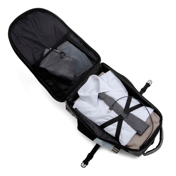 Uma mochila funcional que com suas alças de ombro, poderá ser transportada nas costas. Seu compartimento principal com abertura de 180° possui um amplo espaço e conta com uma cinta elástica com trava, para uma melhor organização dos pertences.