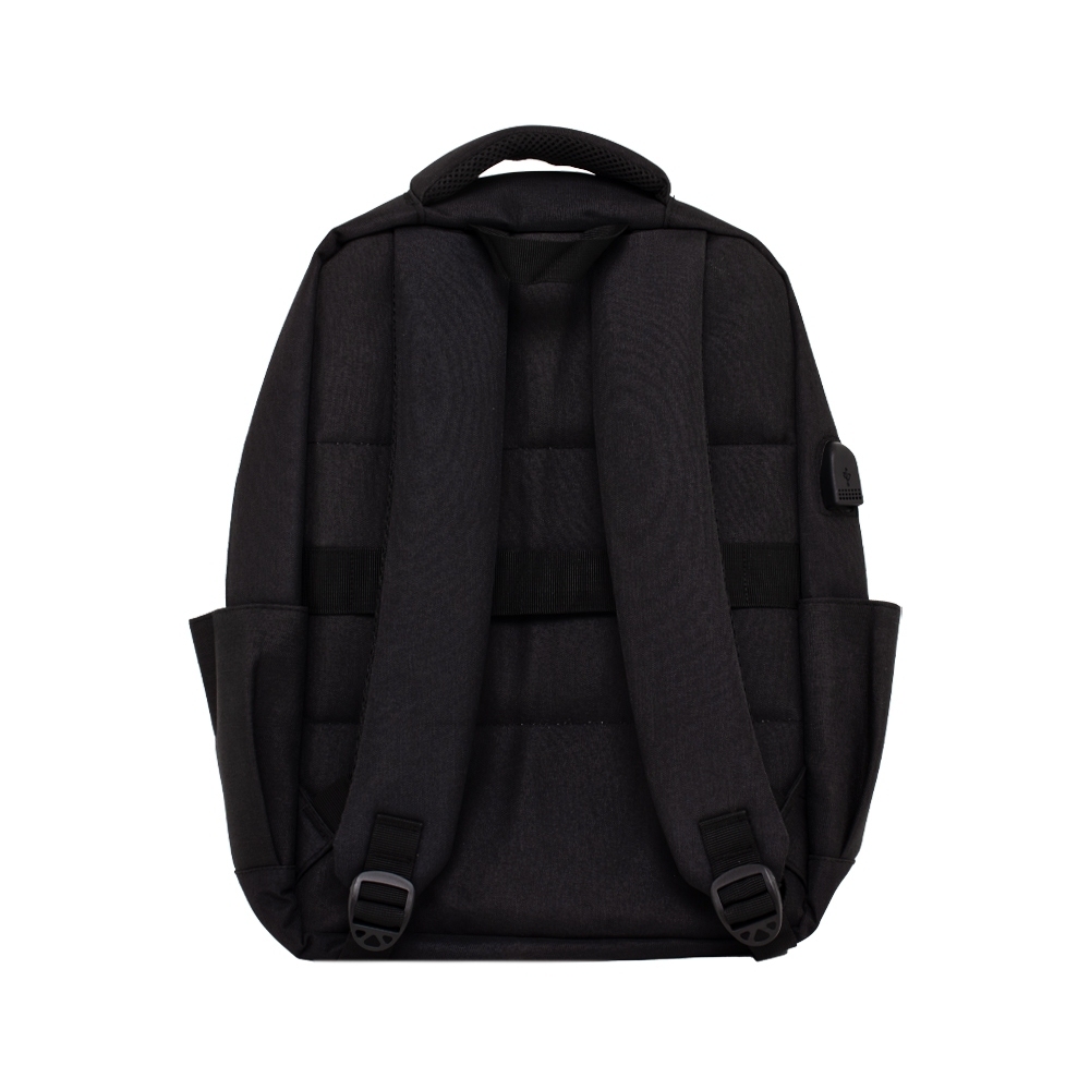 Mochila de nylon 21 litros com dois compartimentos, sendo o principal com bolso para notebook 15,6. Com divisórias internas para acessórios, a mochila possui bolsos laterais, suporte externo usb, duas alças de mãos e alça para engate em malas de viagem.