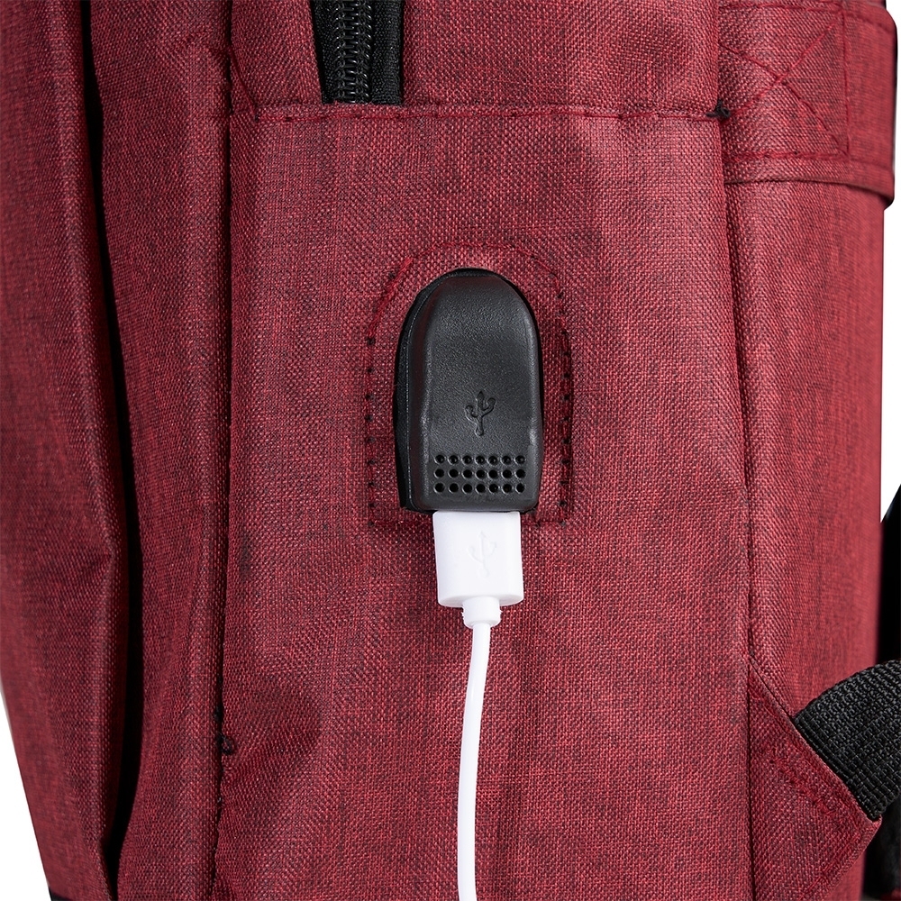 Mochila confeccionada em nylon com compartimento para notebook até 15,6 polegadas. Contém compartimento grande com divisórias para documentos, eletrônicos e caneta, compartimento frontal com abertura vertical e adaptador USB externo com cabo acoplado, permitindo a conexão de um carregador portátil de dentro da mochila e transferência da carga para o lado externo, ocultando o carregador e viabilizando a utilização do celular durante o processo. Contém zíperes com pegadores plásticos, alça de mão em nylon e alças para as costas ajustáveis com revestimento espumado antitranspirante.