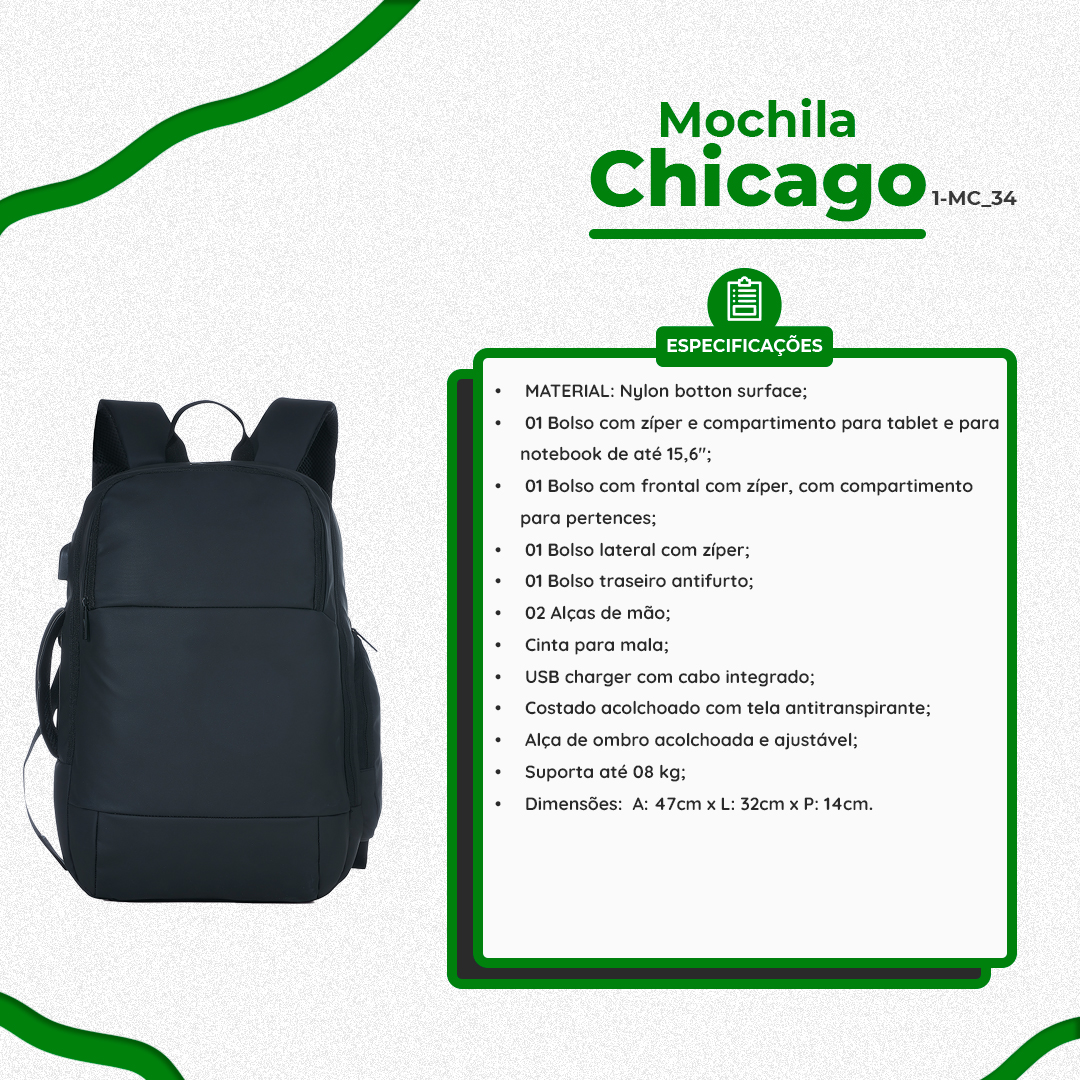 A Mochila Para Notebook Chicago oferece um design elegante e compacto. Desenvolvida em tecido com baixa absorção de água, é ideal para qualquer ocasião. Um modelo leve, confortável e multifuncional podendo ser usada como mochila ou pasta executiva.
