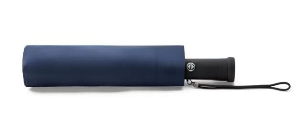 Guarda-chuva dobrável. Poliéster. Dobrável em 3 seções. Com lanterna na pega (incluso 2 pilhas CR2032). Fornecido em bolsa.